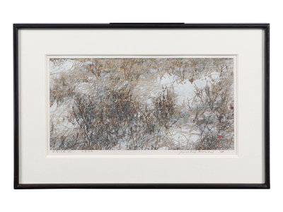woodblock print, framed