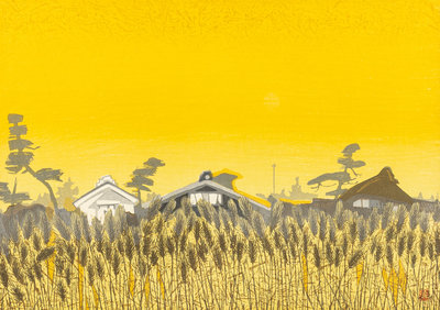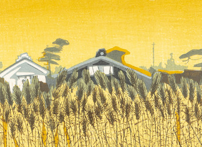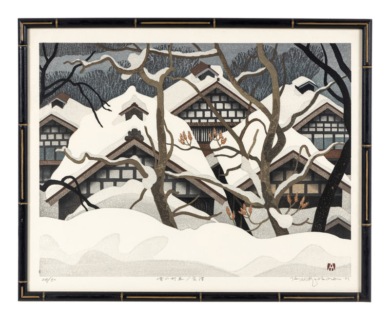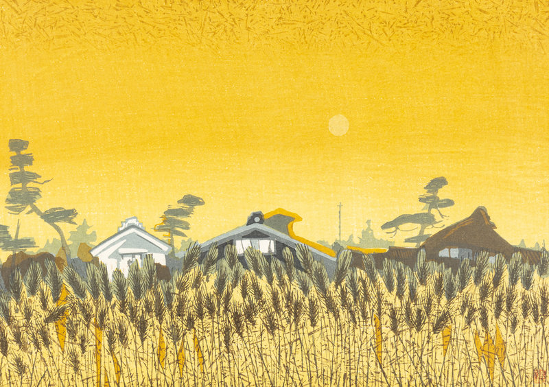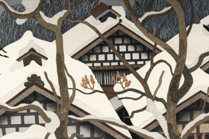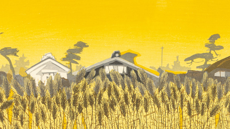 Untitled (Rooftops, Snow), Sumo: Takamiyama, Totsuka: Carp Streamers, Fujieda: Wheat Fields at Twilight (2) (six works)
