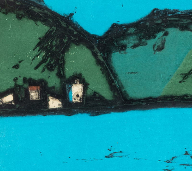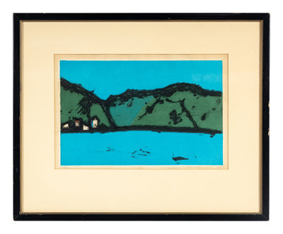 color woodblock print, framed