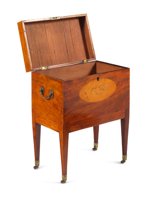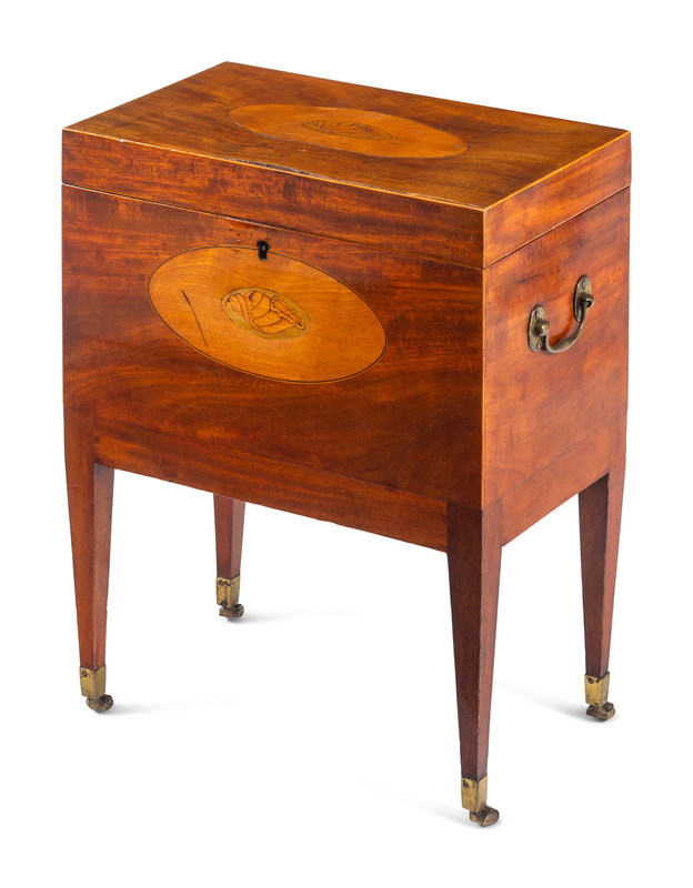 A George III Mahogany, Satinwood and Marquetry Cellarette