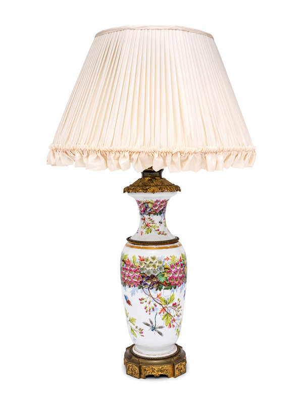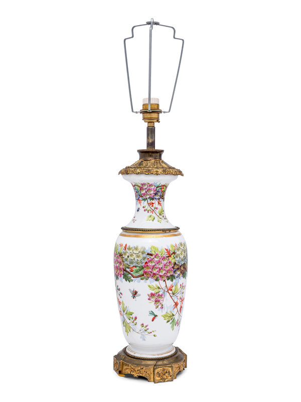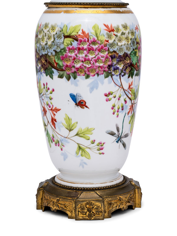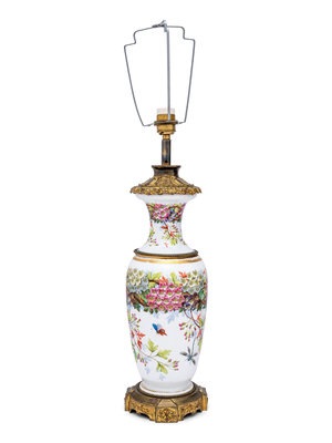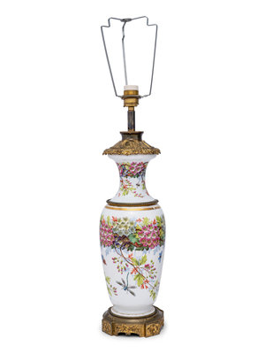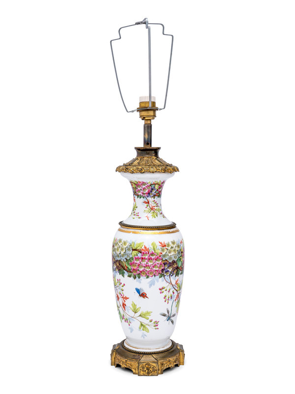 A French Painted Opaline Glass Vase Mounted as a Lamp
