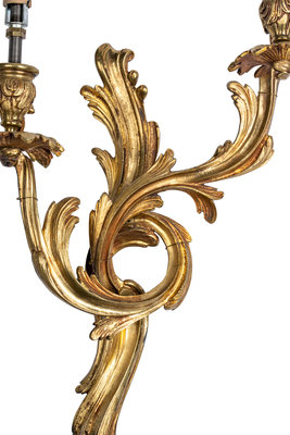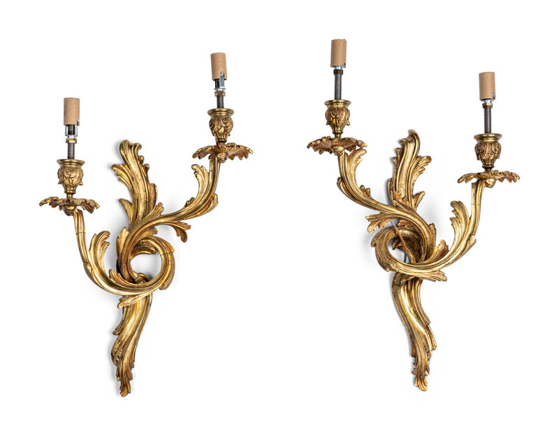 A Pair of Louis XV Style Gilt Bronze Two-Light Sconces
