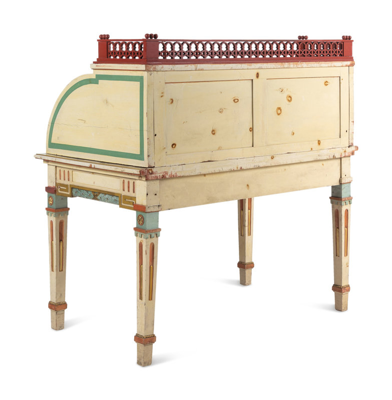 A Continental Polychrome-Painted Cylinder Bureau