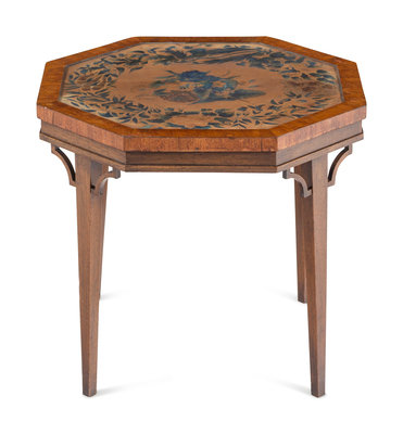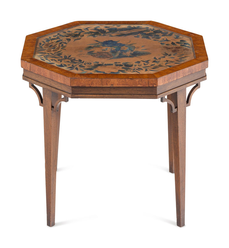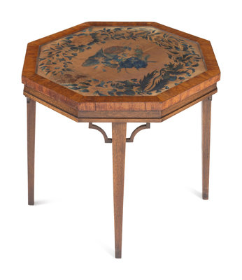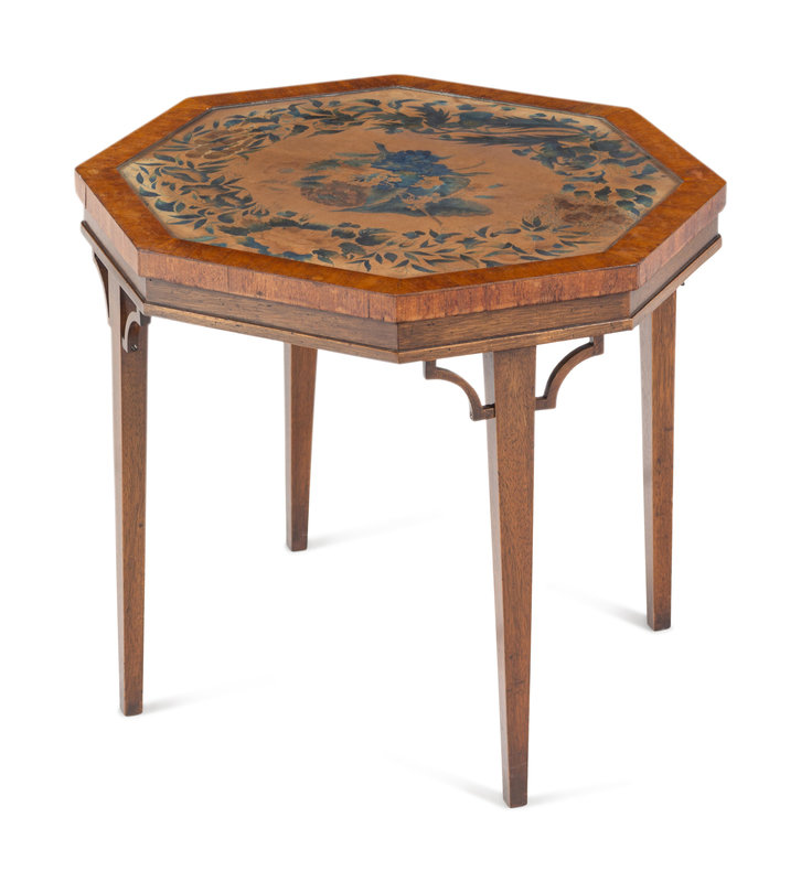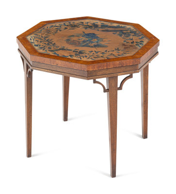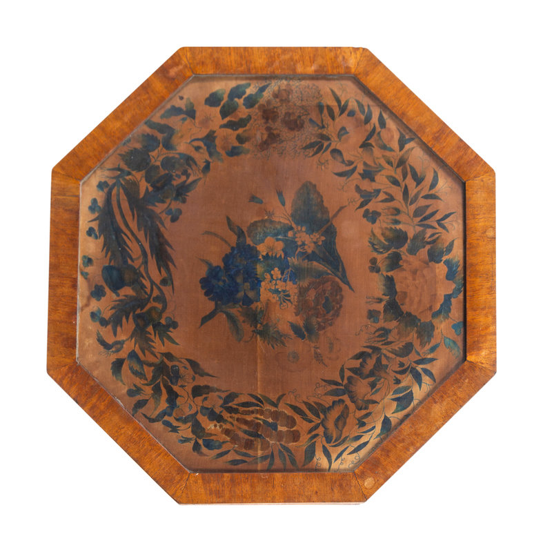A Regency Painted Velvet, Glazed Hexagonal Table Top on Modern Stand