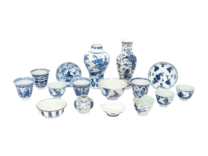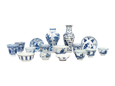 Sixteen Chinese Blue and White Porcelain Articles