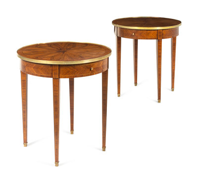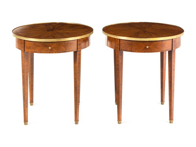 A Pair of Louis XV Style Bookmatch-Veneered Side Tables