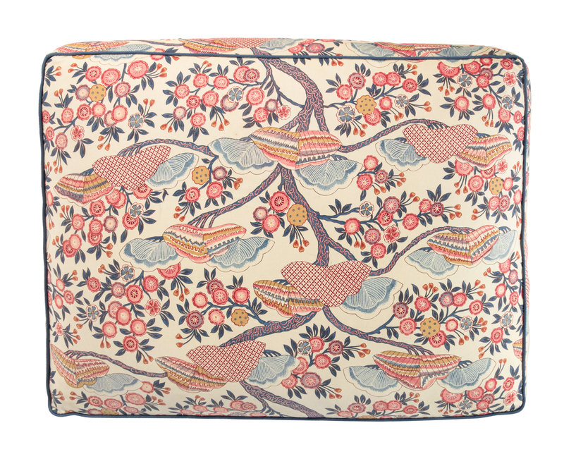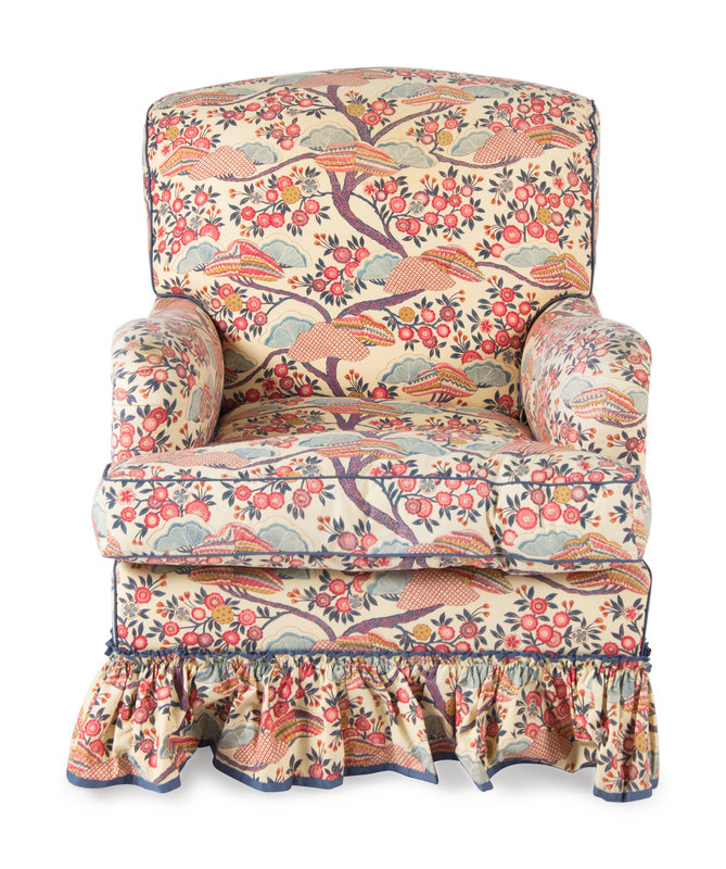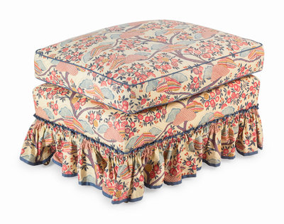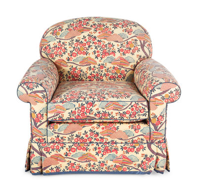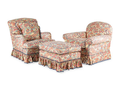 Two Contemporary Chintz-Upholstered Chairs with Ottoman
