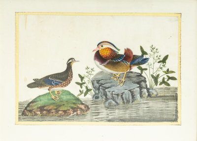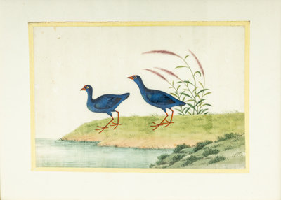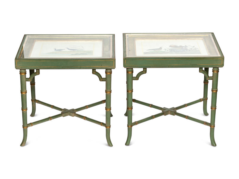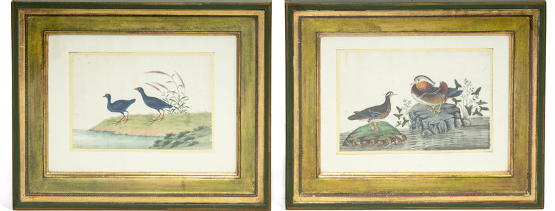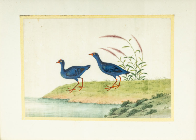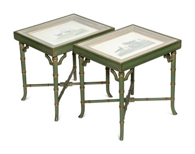 A Pair of Chinese Export Pith Paintings Mounted as Side Tables
