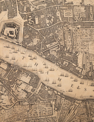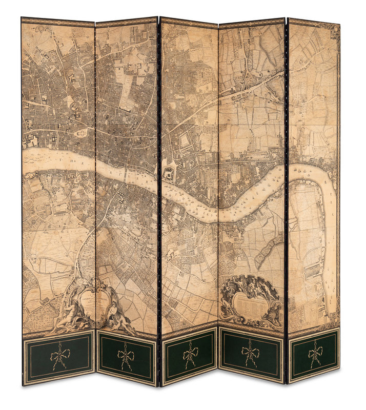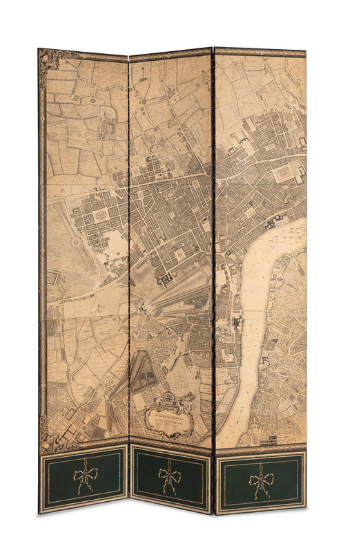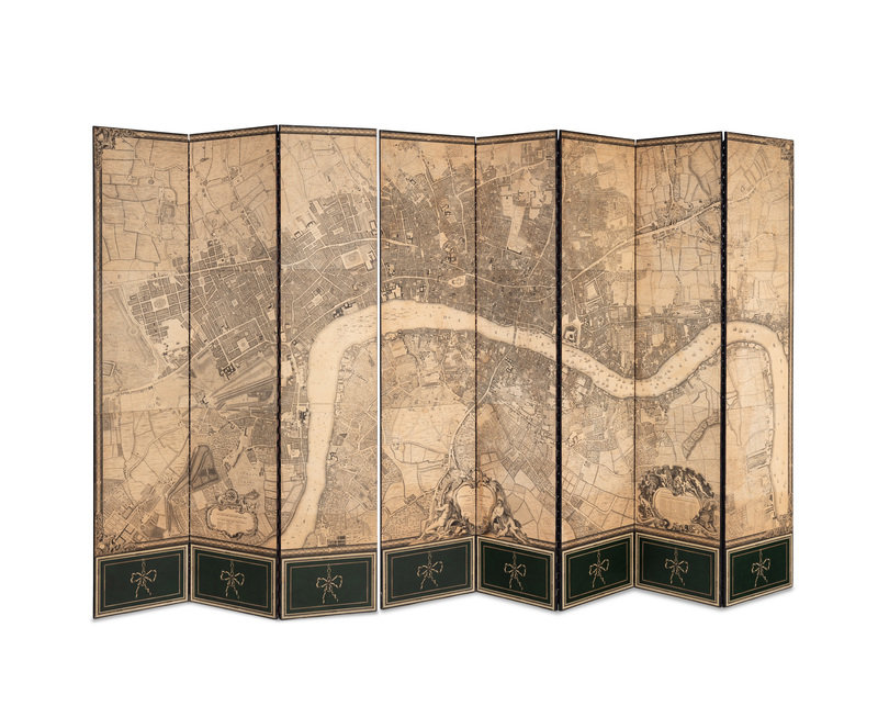 An Eight-Panel Floor Screen Depicting an Engraved Map of London
