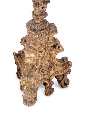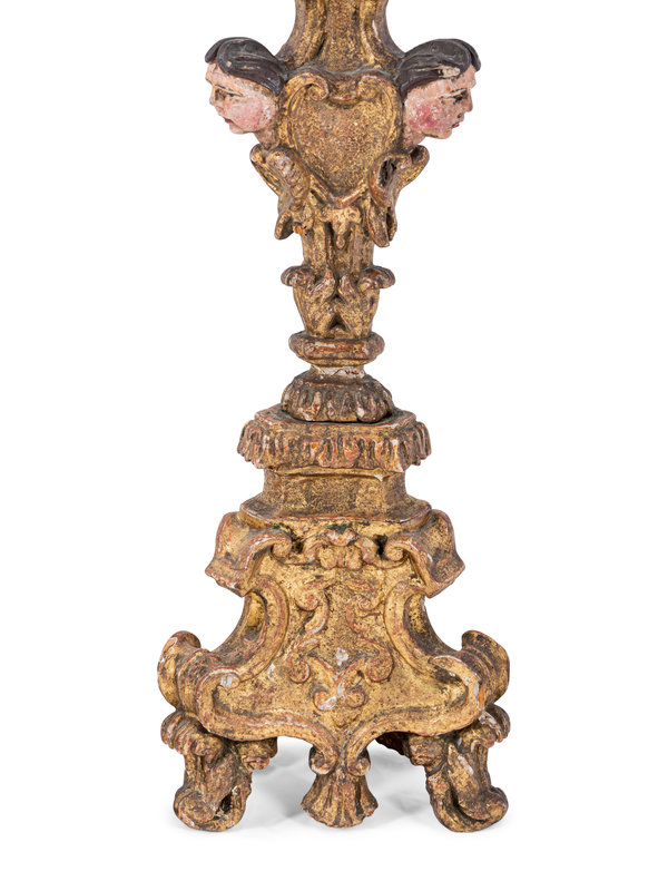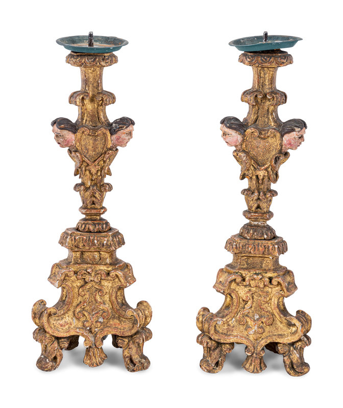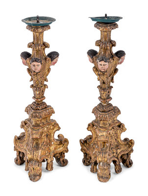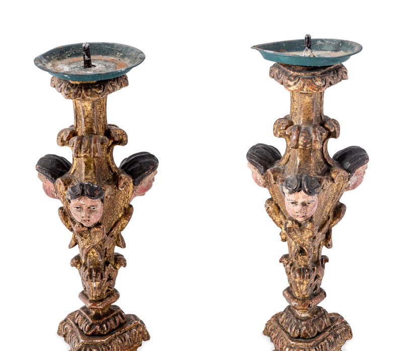 A Pair of Italian Baroque Gilt and Polychromed Pricket Sticks