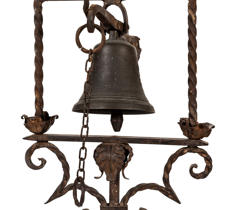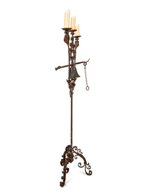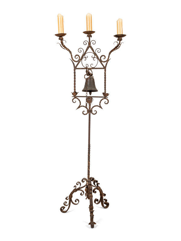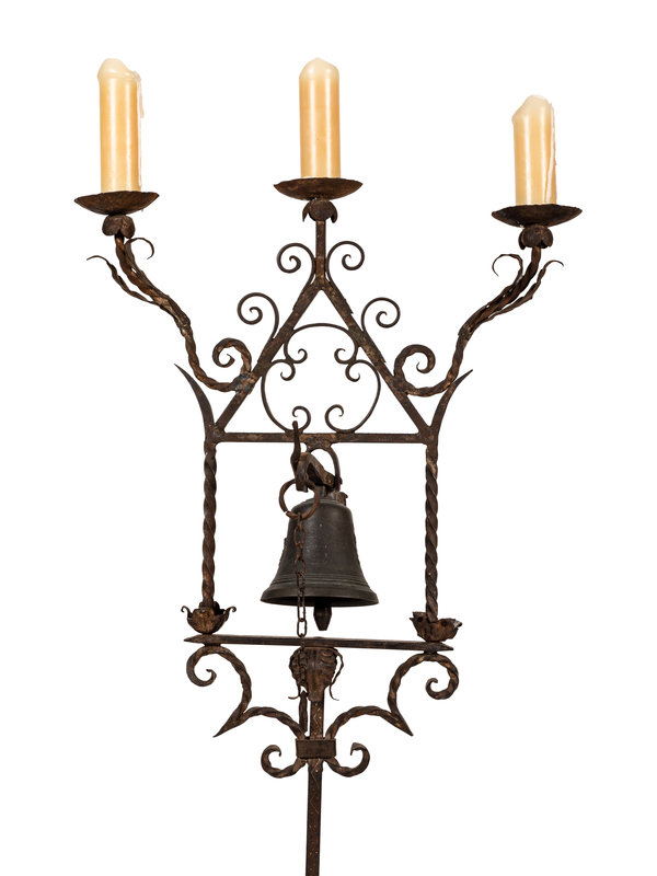 A Spanish Baroque Style Wrought Iron Torchère with Bell