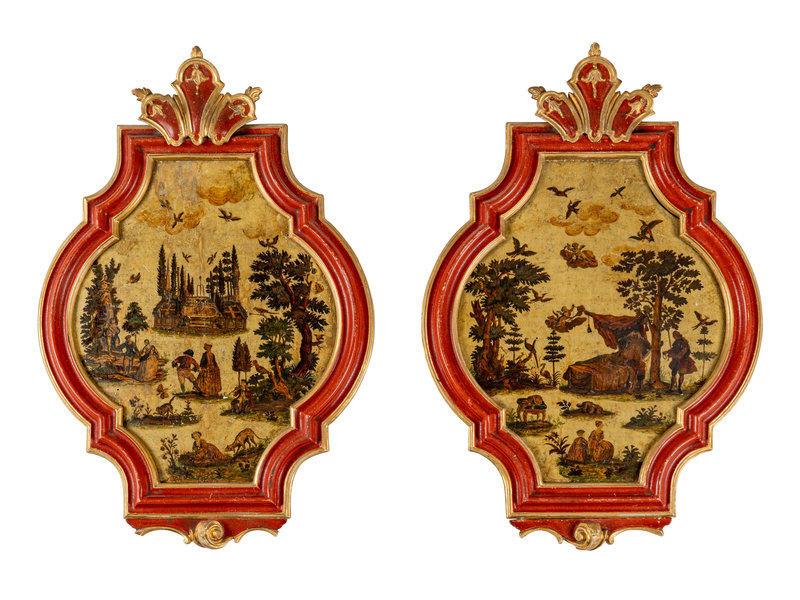 A Pair of Venetian Lacca Povera Cartouche Panels
