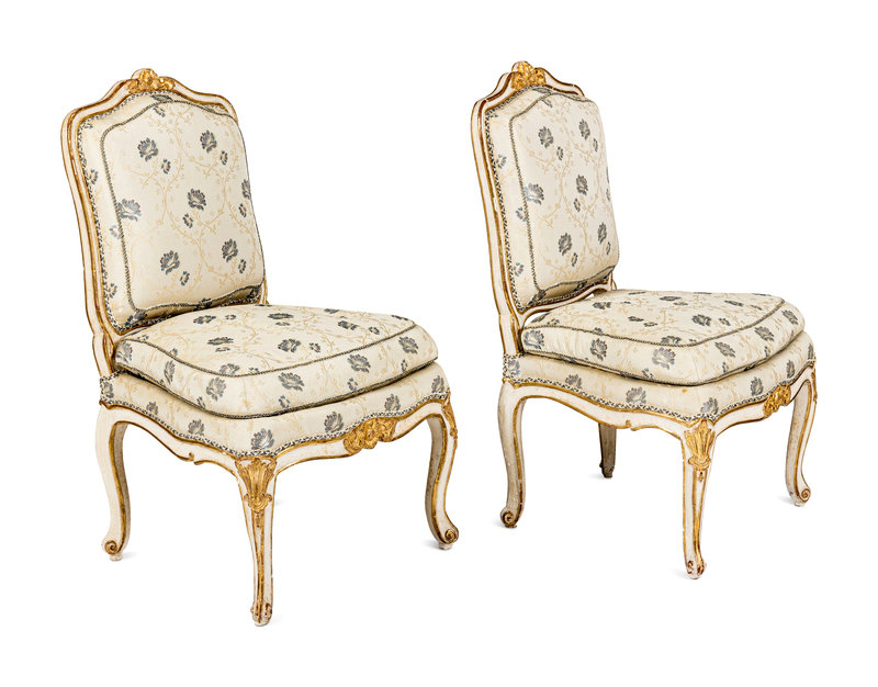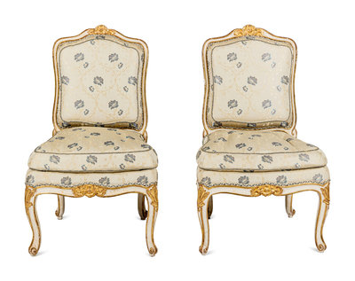 A Pair of Louis XV White-Painted and Parcel-Gilt Side Chairs