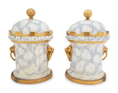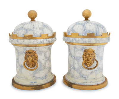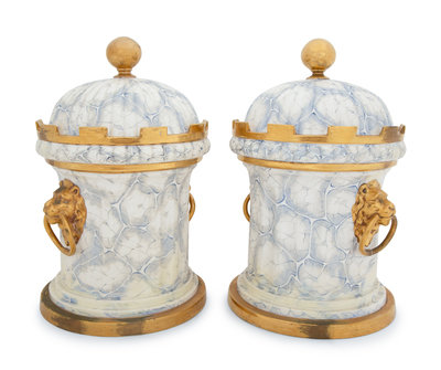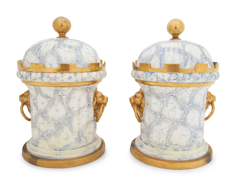 A Pair of English Parcel Gilt Porcelain Fruit Coolers