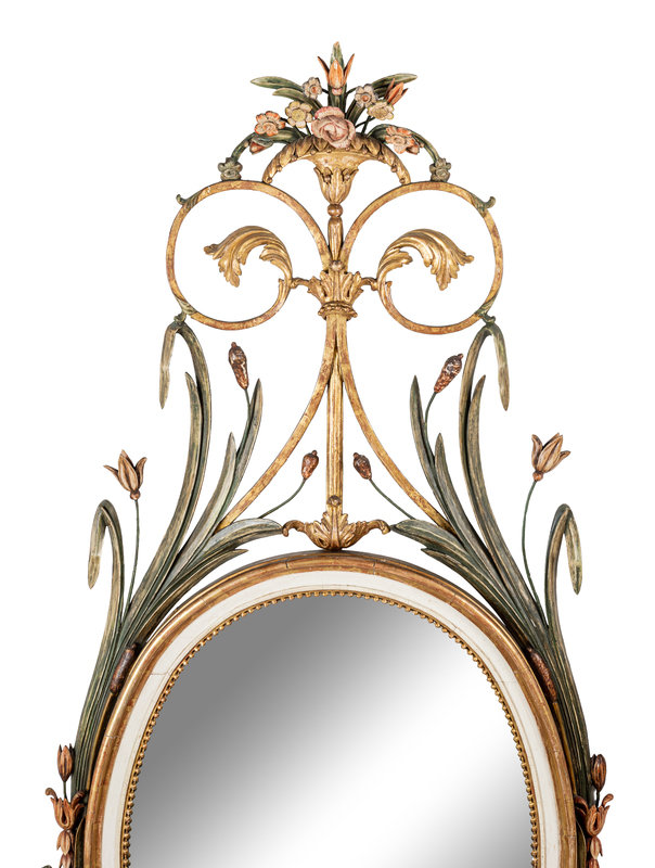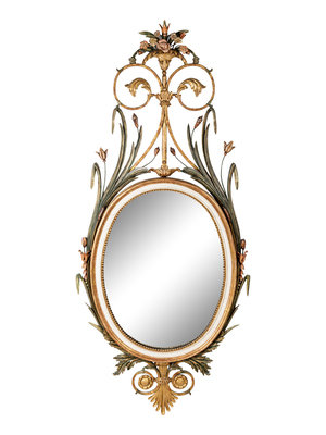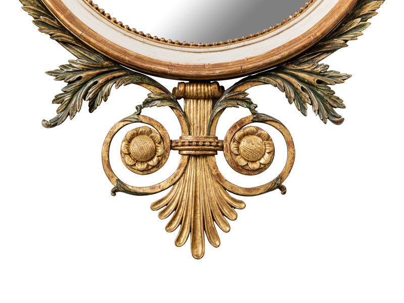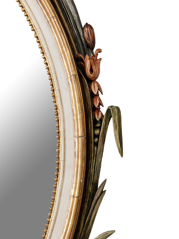 A George III Style Painted and Parcel-Gilt Oval Mirror