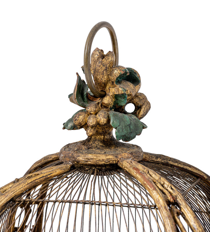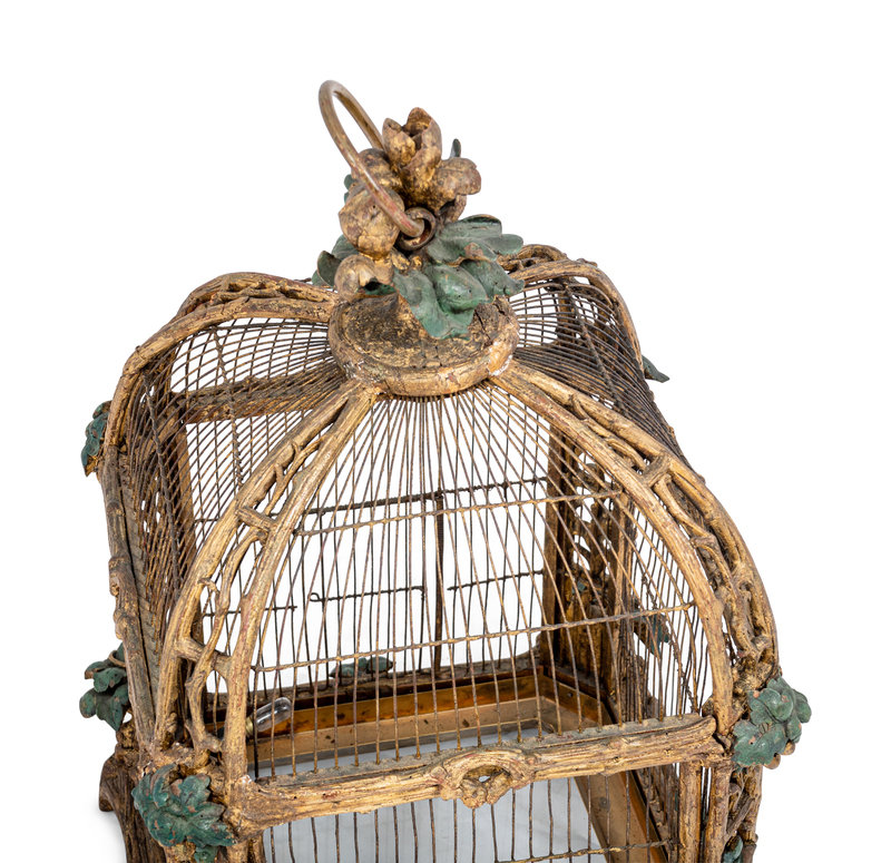 A Continental Giltwood and Painted Wirework Lantern