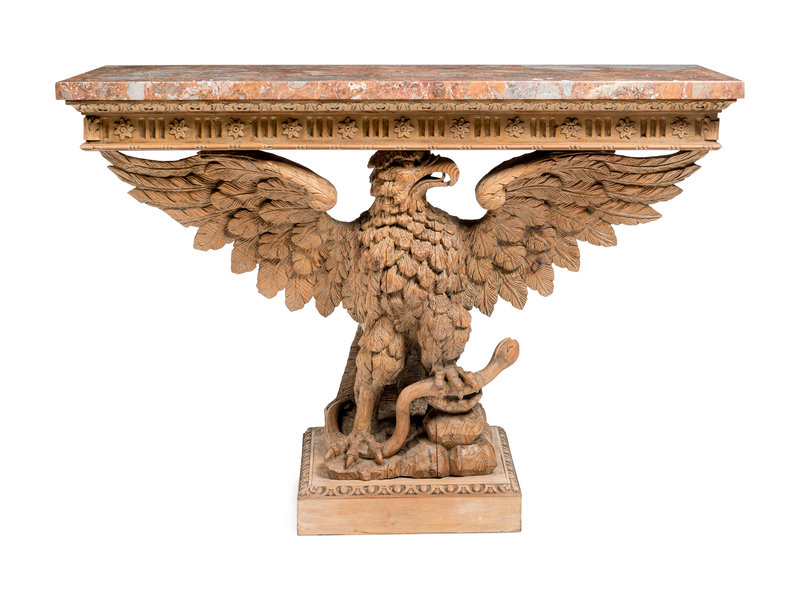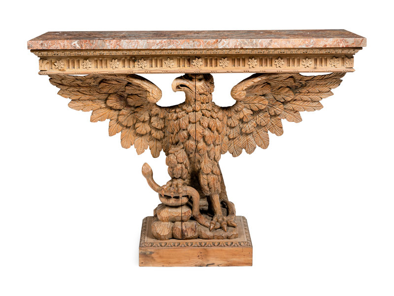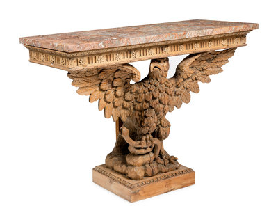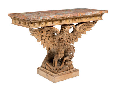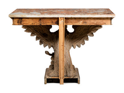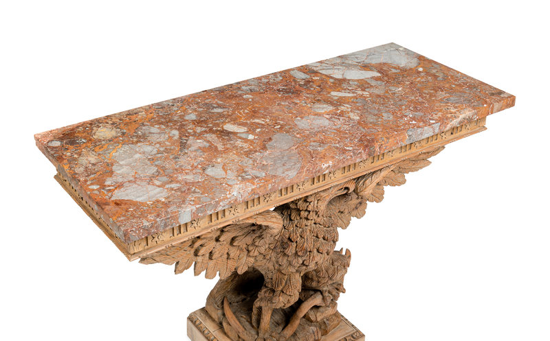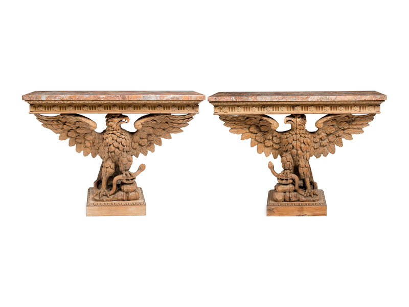 A Pair of George II Style Carved Pine Marble-Top Pier Tables