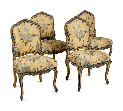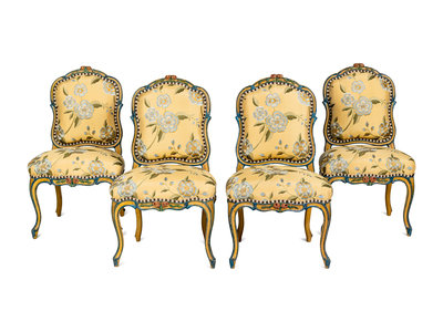 A Set of Four Louis XV Painted Side Chairs