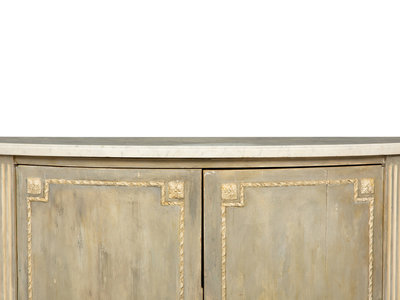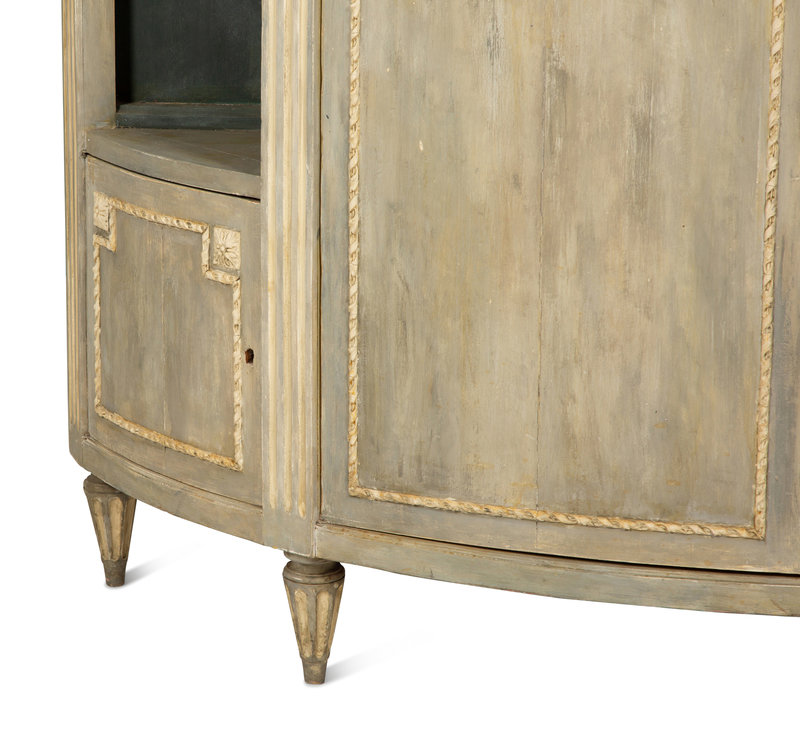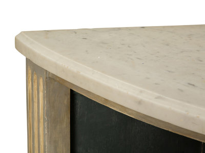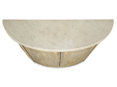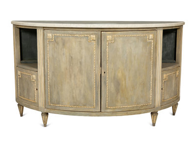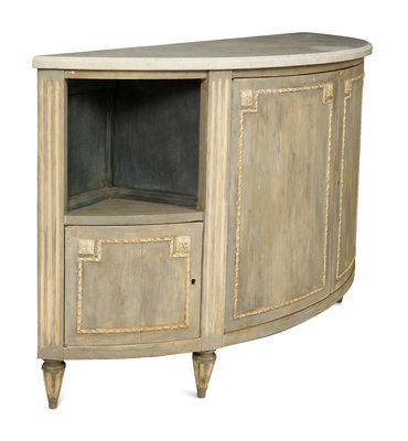 A Louis XVI Style Grey-Painted Marble-Top Demilune Cabinet