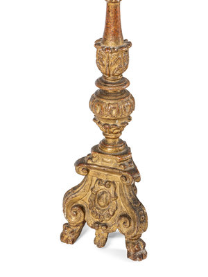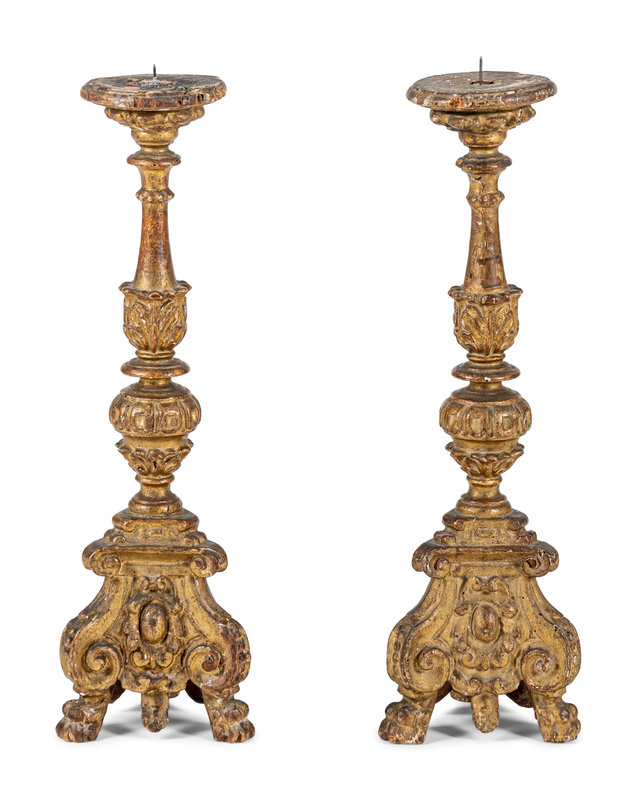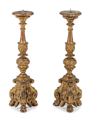 A Pair of Italian Baroque Giltwood Pricket Sticks