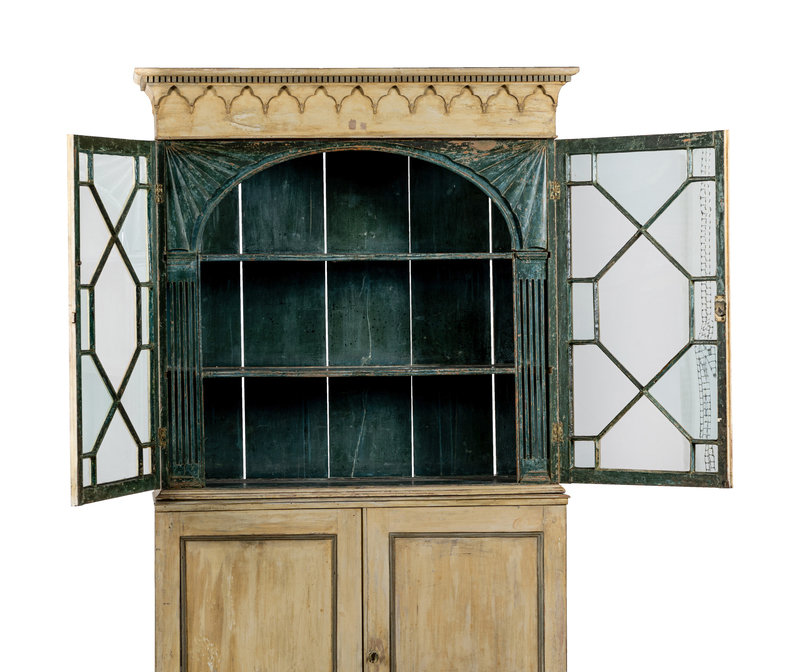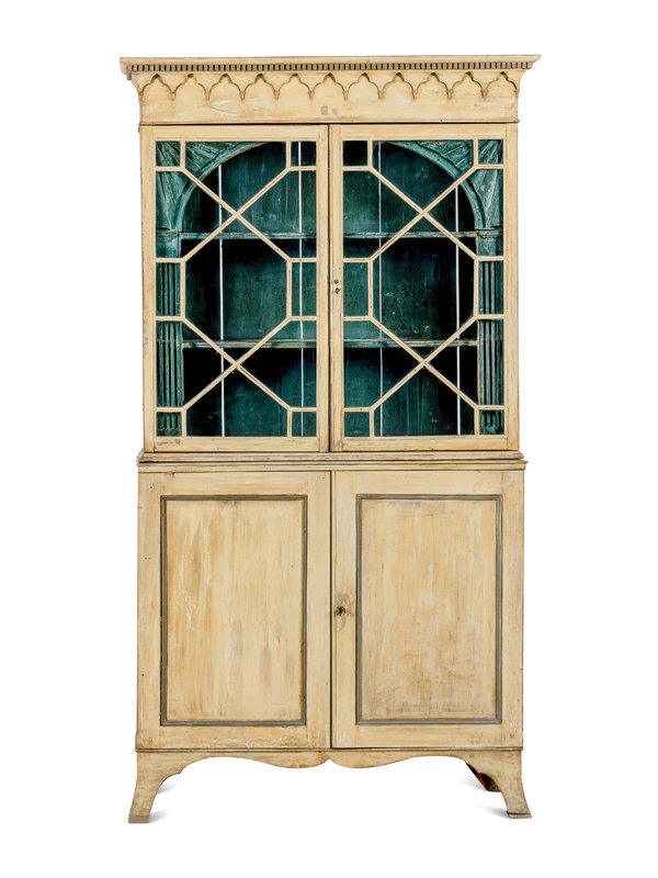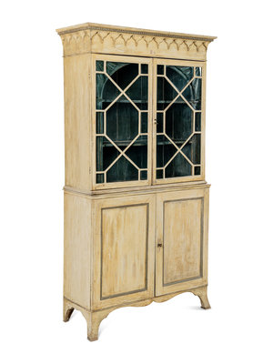 A Late George III Ivory-Painted Vitrine-on-Cabinet
