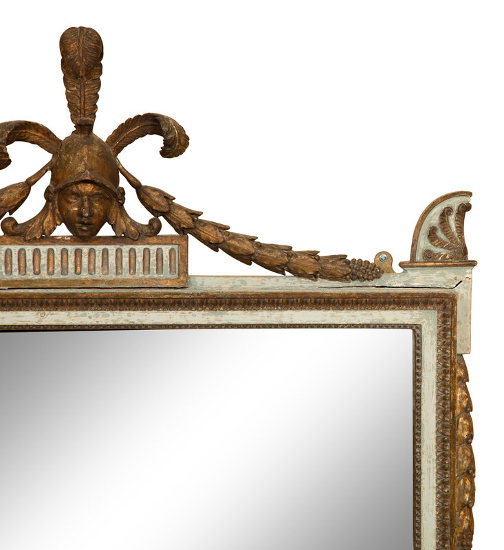 A North Italian Neoclassical Grey-Painted and Parcel-Gilt Overmantel Mirror