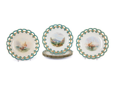 A Set of Six English Porcelain Dessert Plates