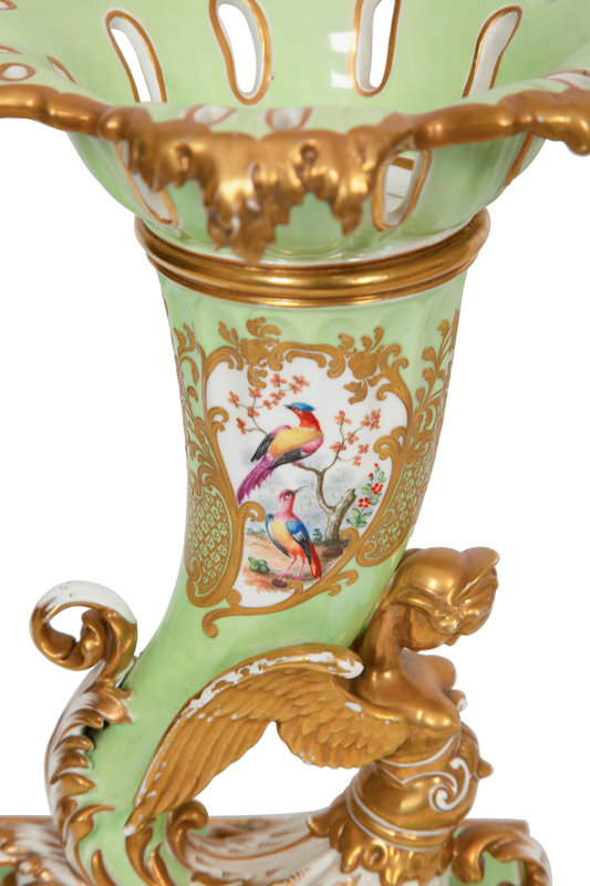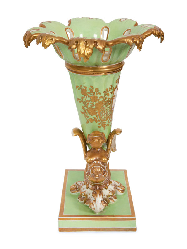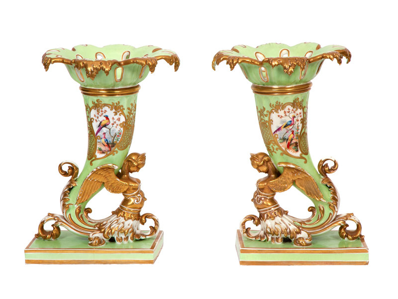 A Pair of Chamberlain's Worcester Apple Green-Ground Porcelain Cornucopia Vases