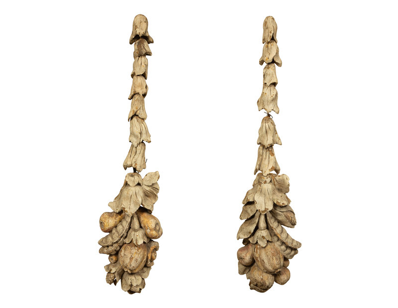 A Pair of Continental Carved and Painted Cornucopia Wall Ornaments