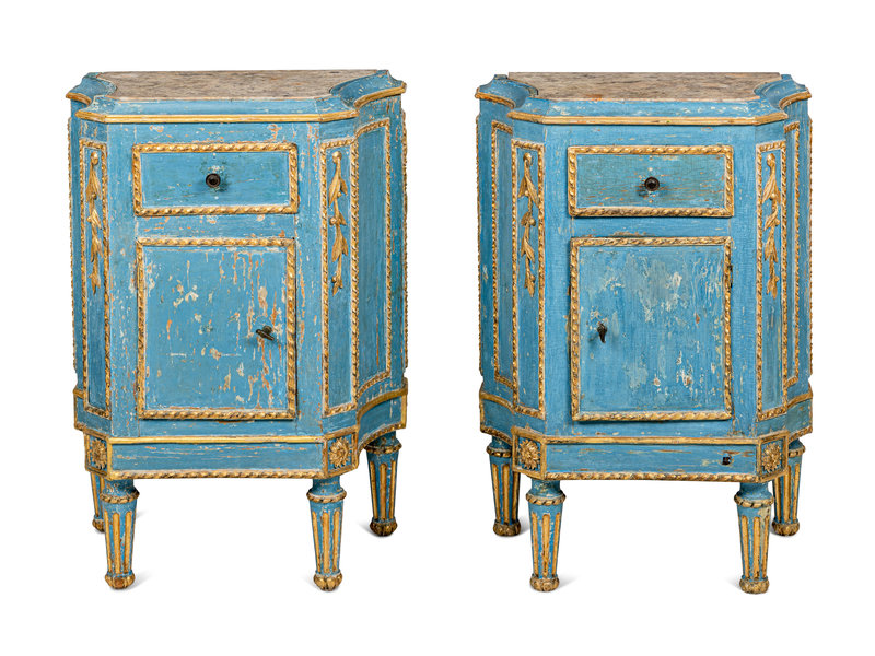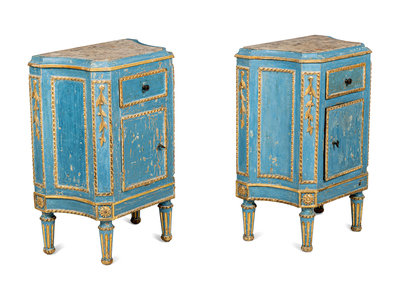 A Pair of North Italian Painted and Parcel-Gilt Side Cabinets