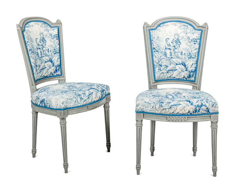 A Pair of Louis XVI Grey-Painted Chaises