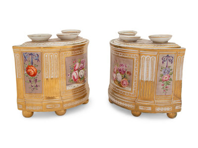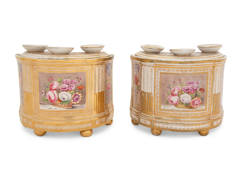 A Pair of English Porcelain Bough Pots and Covers