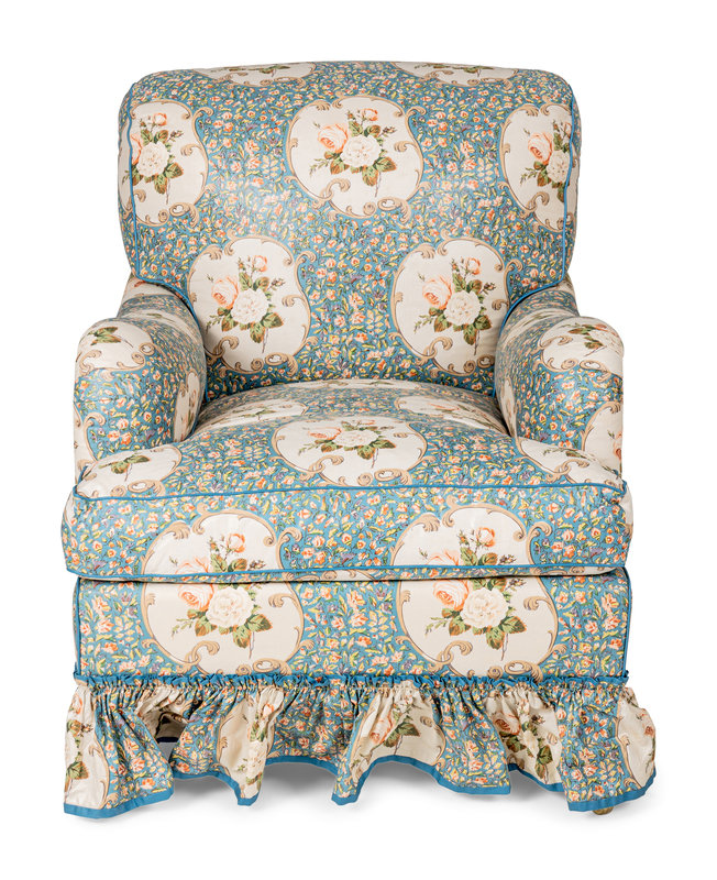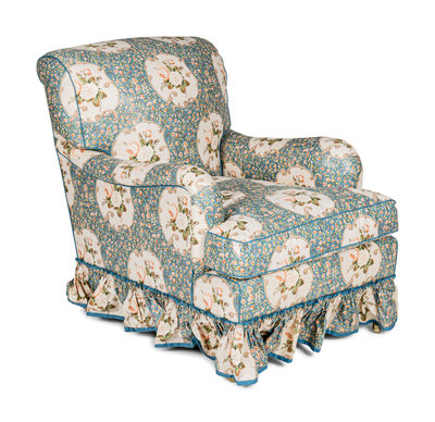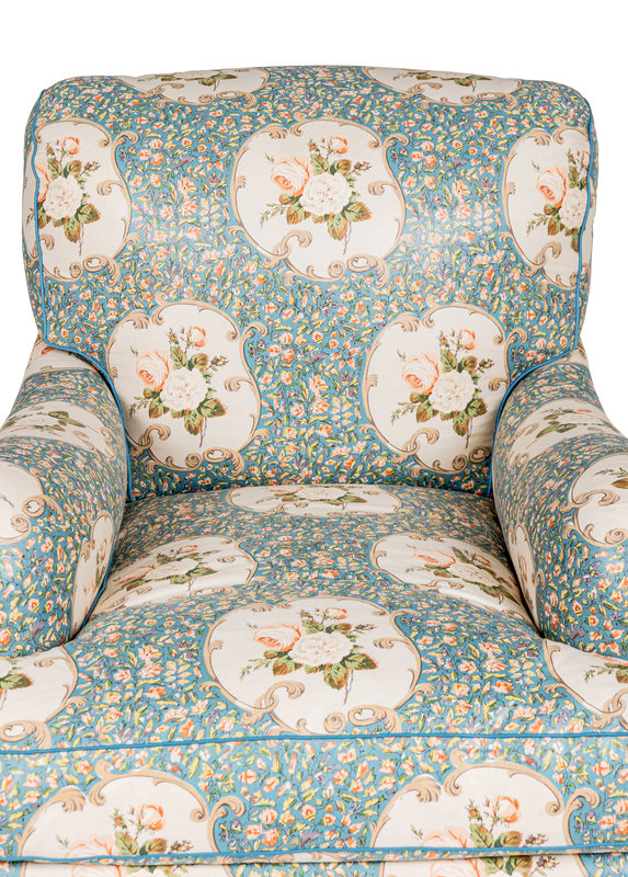 An English Chintz-Upholstered Easy Chair and Ottoman
