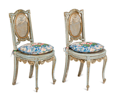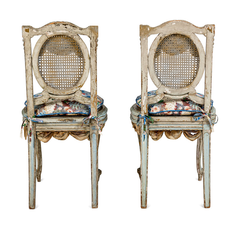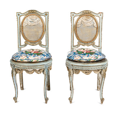 A Pair of Louis XVI Style Painted and Parcel-Gilt Chaises