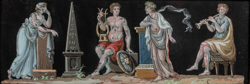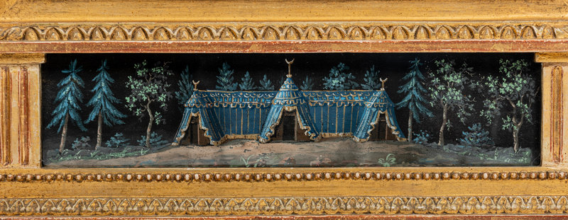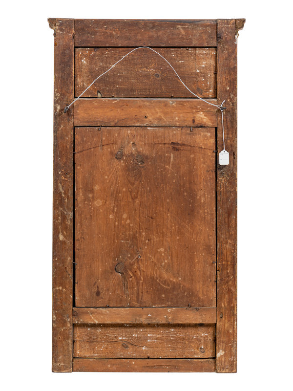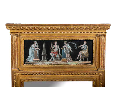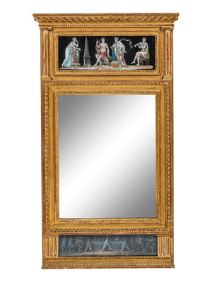 A North European Neoclassical Gouache Panel Inset Giltwood Mirror