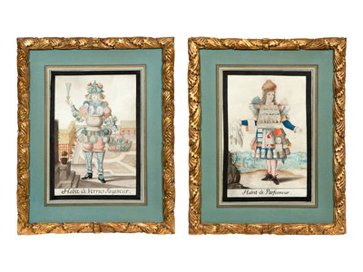Habit de Verrier Fayencier and Habit de Parfumeur from “Les Costumes grotesques et les métiers (Suite of Fanciful Costumes)" by Nicolas de Larmessin (French, 1684-1753)