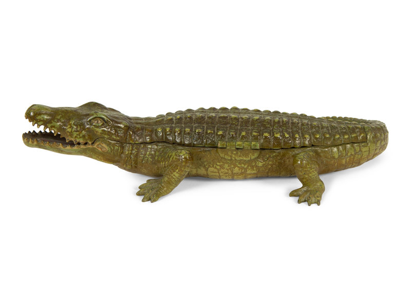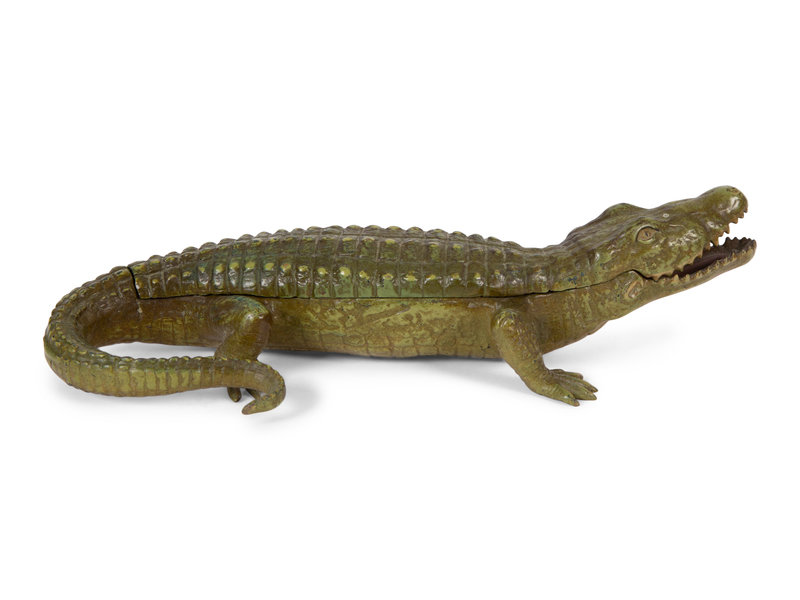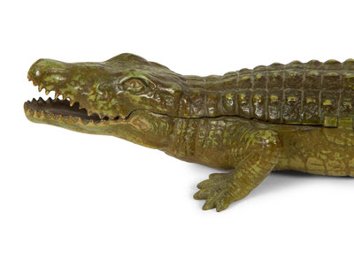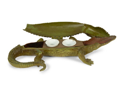 An Austrian Cold-Painted Bronze Crocodile Form Ink Stand