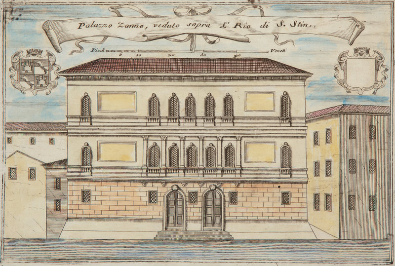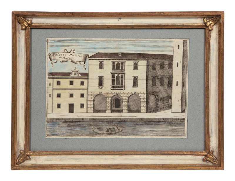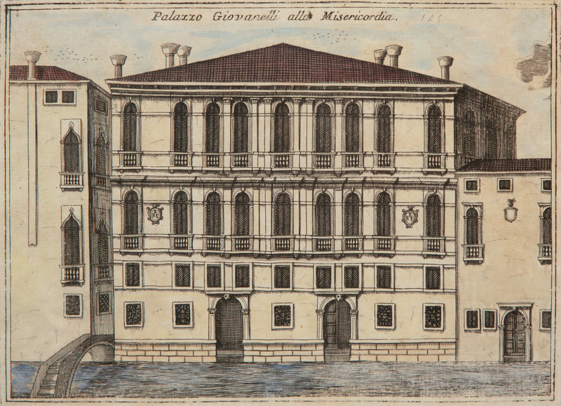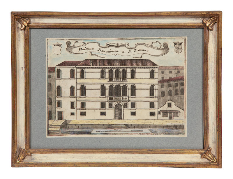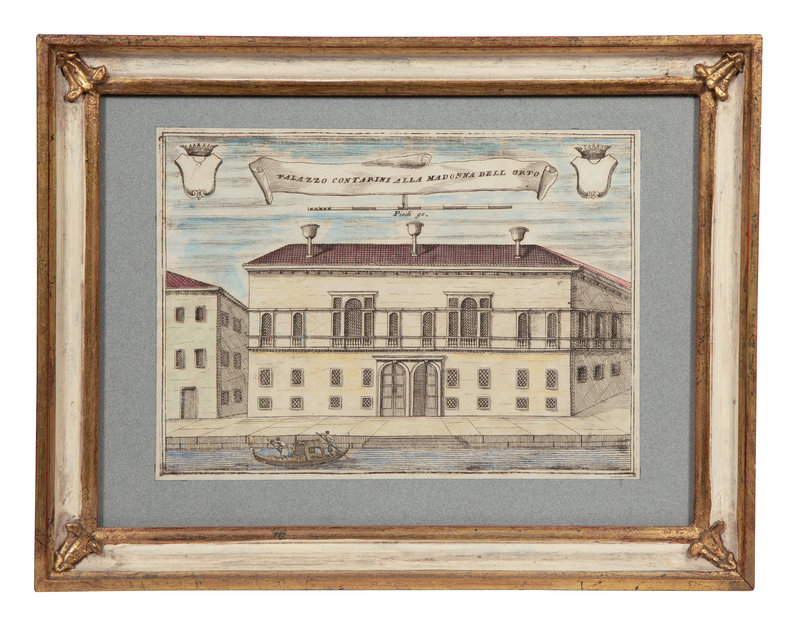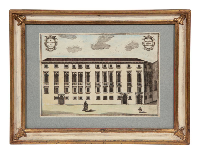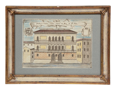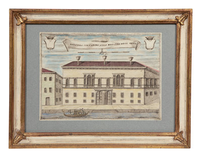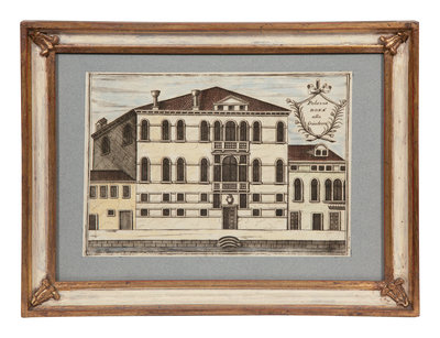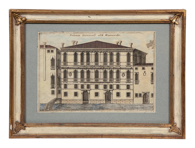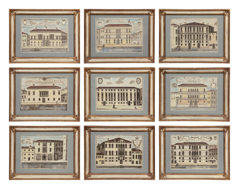 A Set of Nine Italian Hand-Colored Engravings Depicting Venetian Palaces