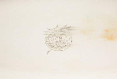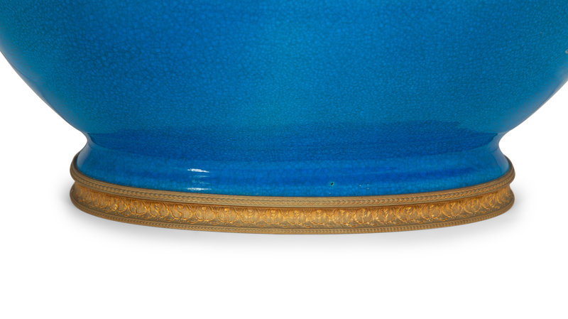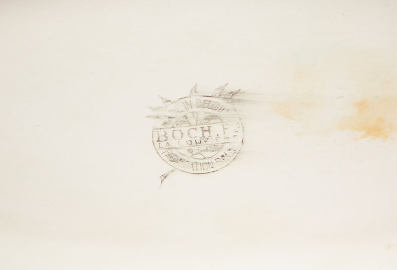 stamped Made in Belgium / Boch Frs / La Louviere / Fabrication Belge to the underside; the gilt metal foot mount stamped France.