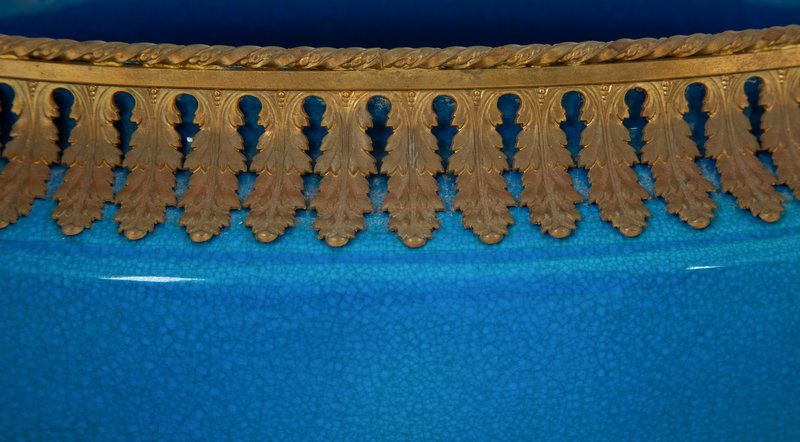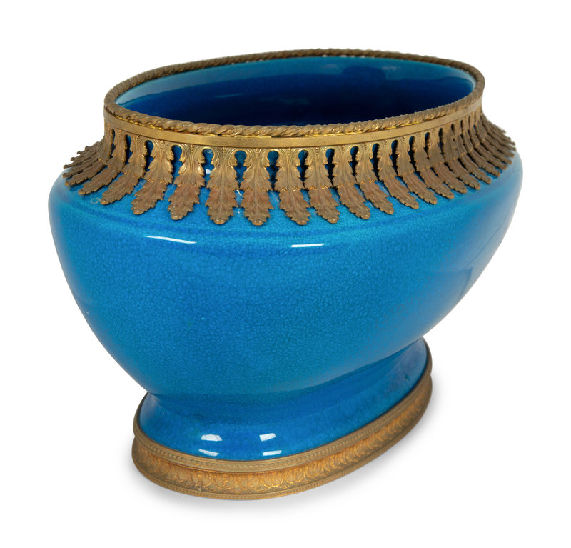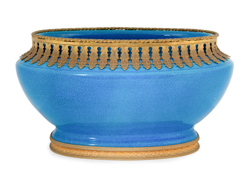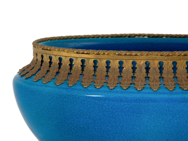 A Boch Frères Metal Mounted Porcelain Centerpiece Bowl