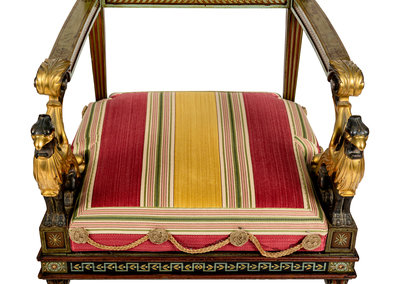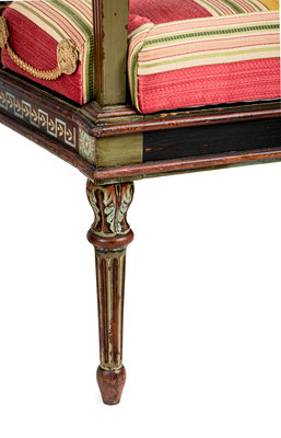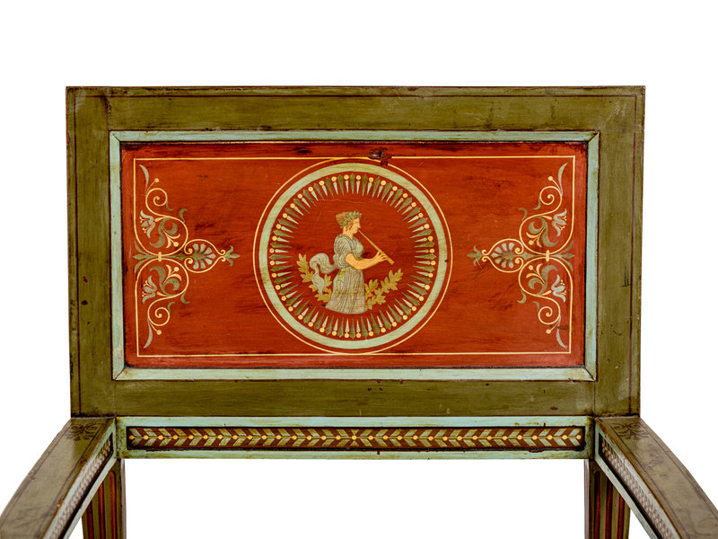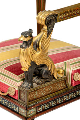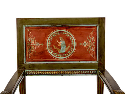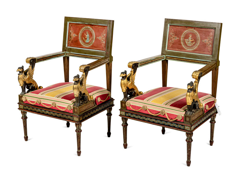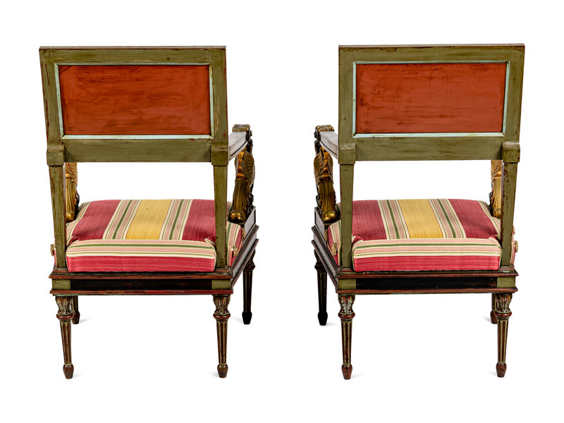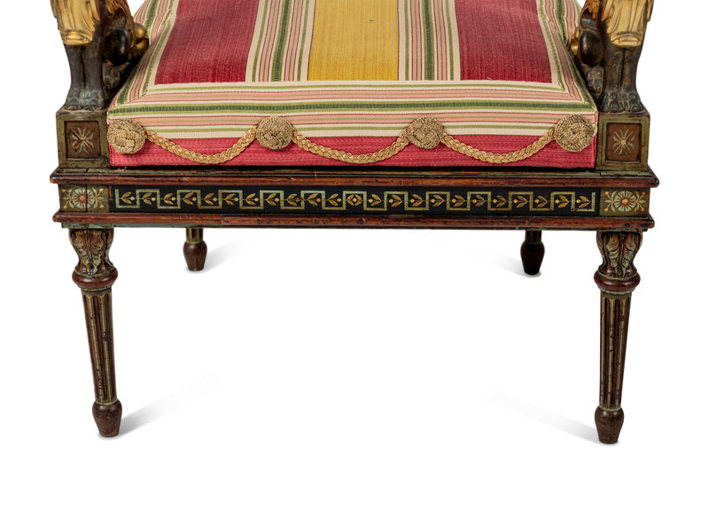 A Pair of North Italian Neoclassical Bronze Mounted Polychrome Painted Armchairs