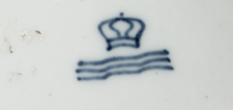 with crown and three waves mark to the underside in underglaze blue.