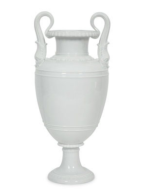 A Royal Copenhagen White Glazed Porcelain Dolphin Handled Vase