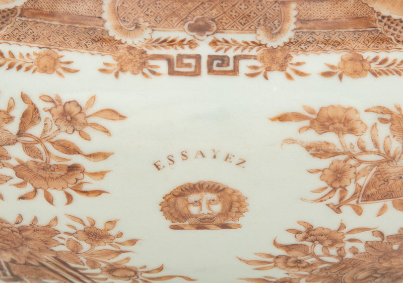 the cover and tureen painted on each side with a lion mask crest below the motto Essayez.