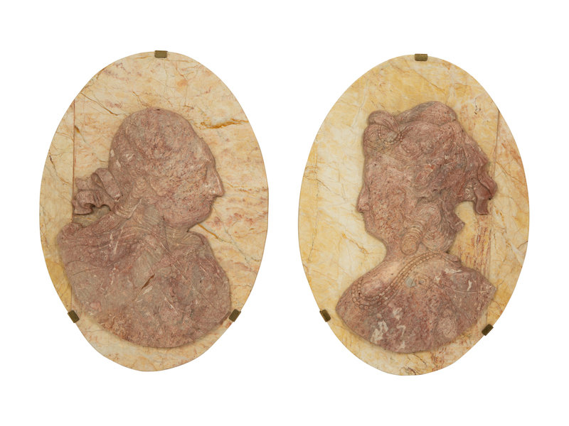 A Pair of Bi-Color Marble Profile Portrait Plaques