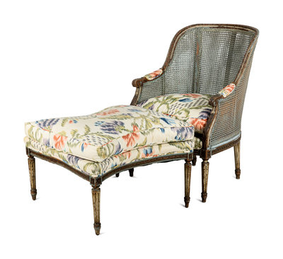 A Louis XVI Style Blue-Painted Duchesse Brisée