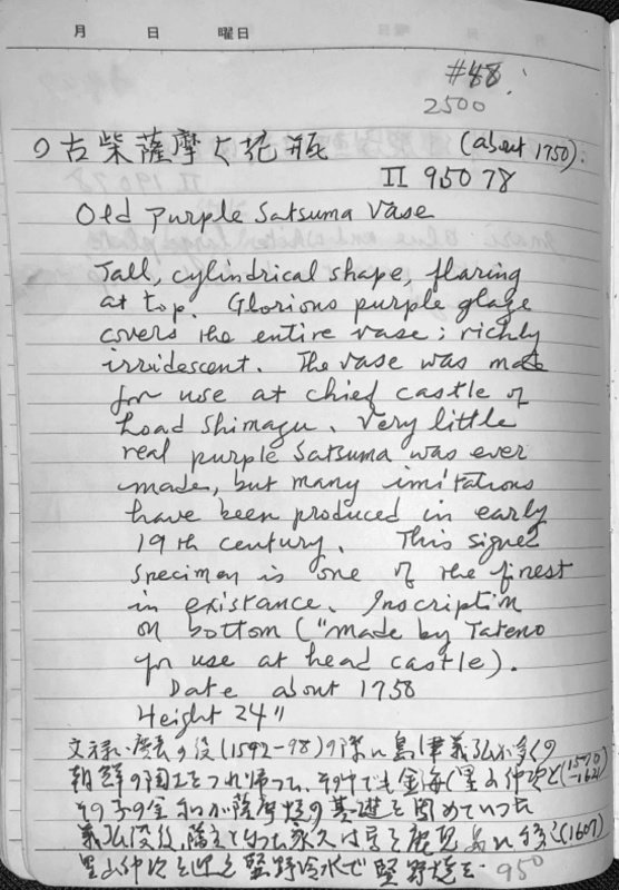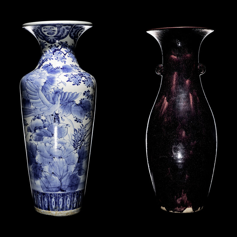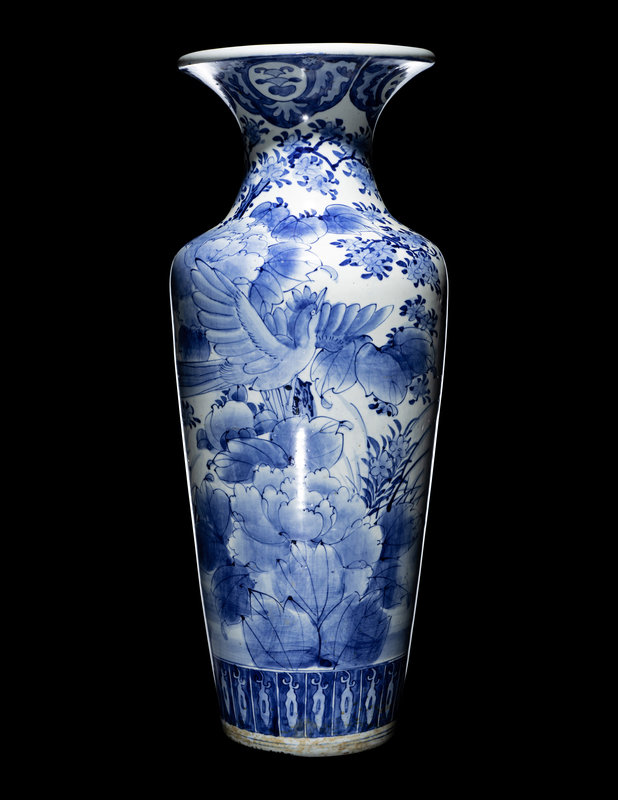 Satsuma vase: 18th Century; blue and white vase: 20th Century