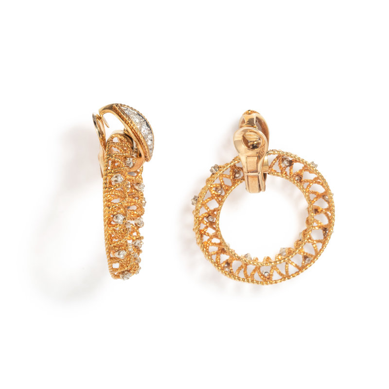 YELLOW GOLD AND DIAMOND EARCLIPS