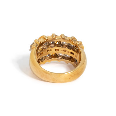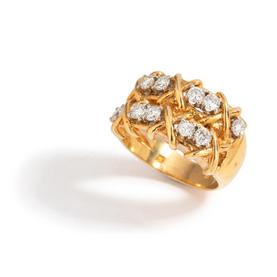 Containing ten round brilliant cut diamonds weighing approximately 0.80 carat total. Ring size 6.