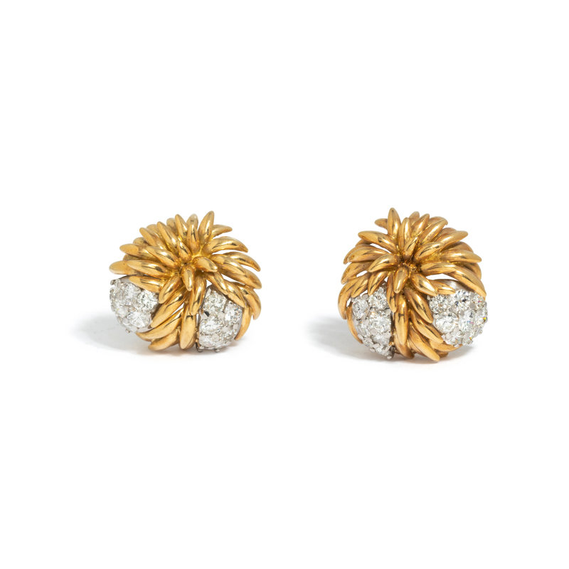 YELLOW GOLD AND DIAMOND EARCLIPS